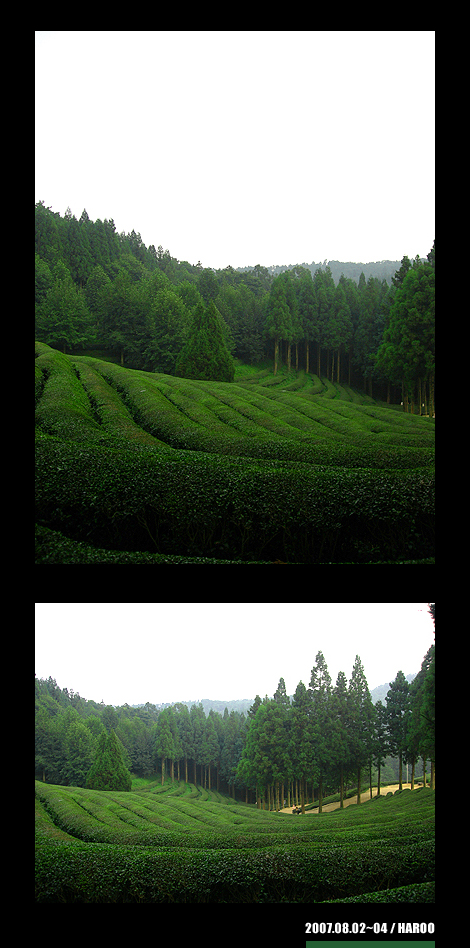 전에 어떤분이 해뜰무렵 녹차밭 사진찍어서 올리셨던게 생각난다는.. 사진 참 멋졌었는데..ㅇ_ ㅇ